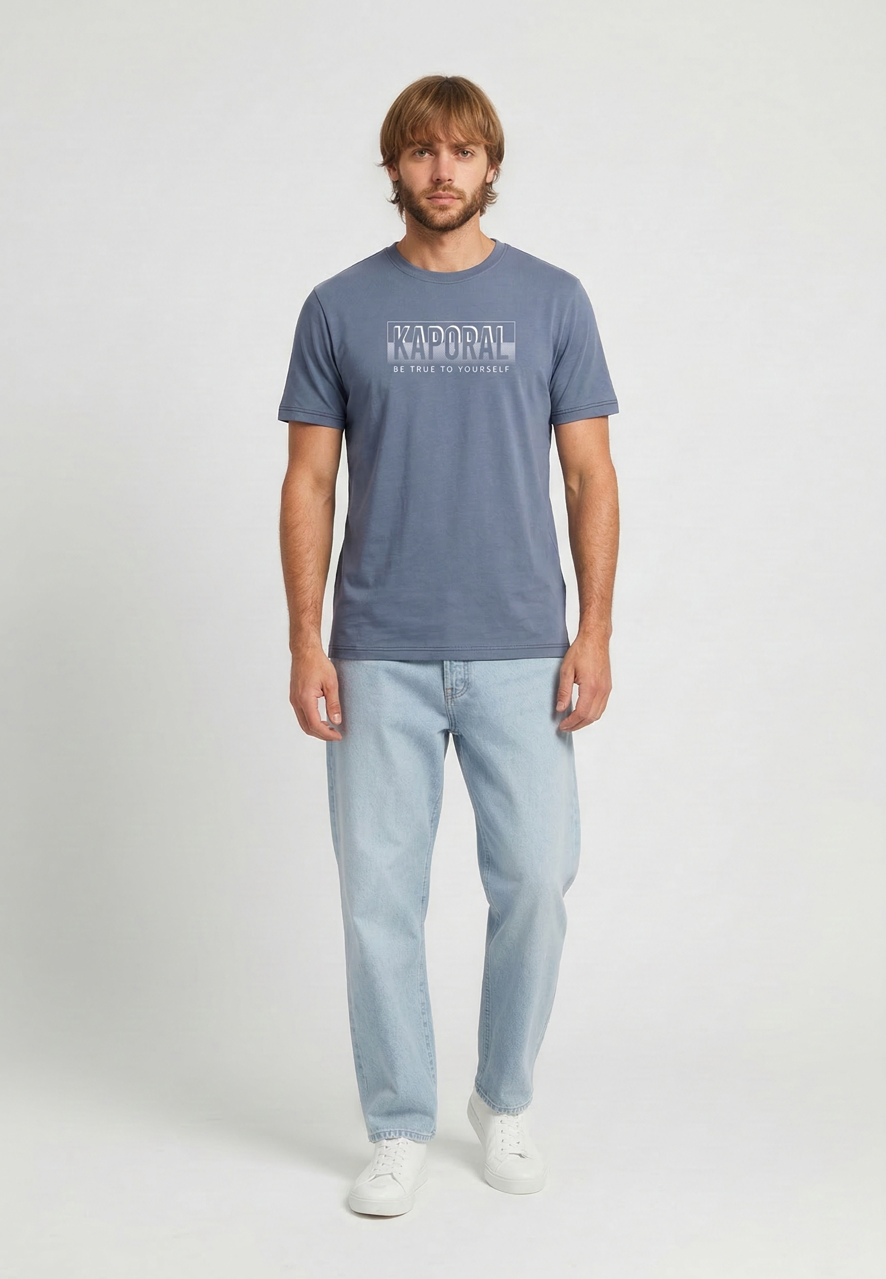 T-shirt manches courtes regular bleu rustique coton